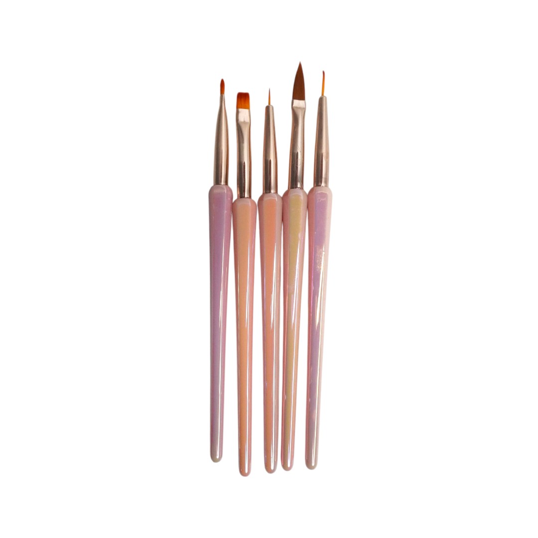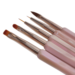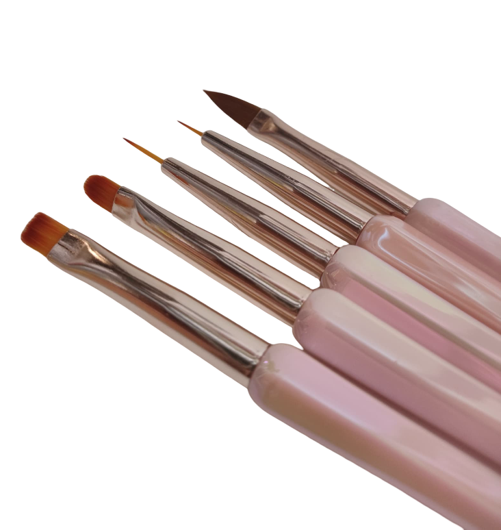 5 diferentes pinceles que capturan el producto de manera eficiente y lo liberan con uniformidad en la uña profesional y sin esfuerzo