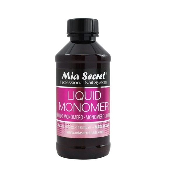 Monomero Mia Secret posee fórmula avanzada que no se torna amarilla la cual provee flexibilidad, adhesión y absorción al combinarse con nuestros polvos acrílicos.