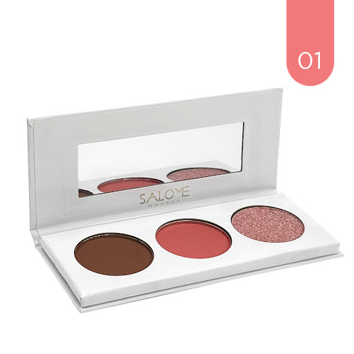 -Trio de rubor en crema, contorno e iluminador en polvo.